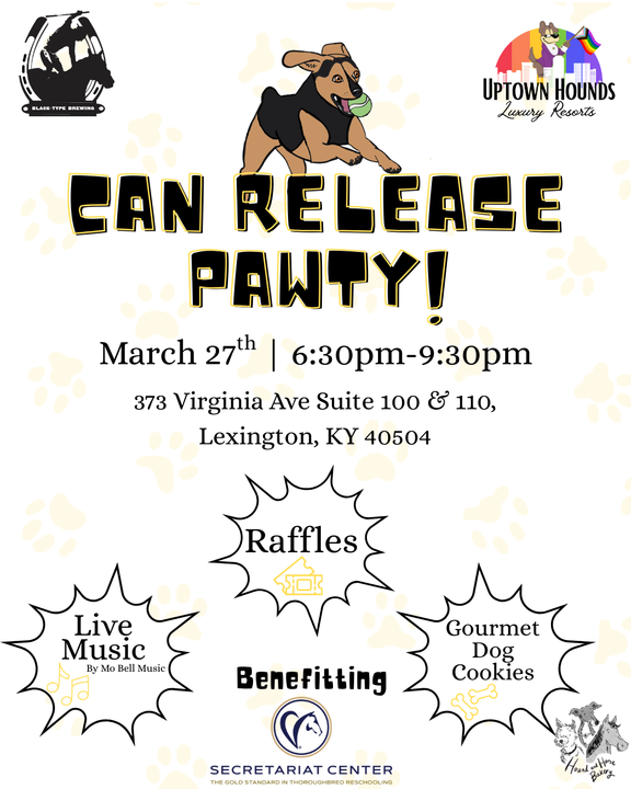 Who is ready for the Can Release Pawty? UpTown Hounds is teaming up with Black- Type Brewing for a special can release and your pup can be the star! All proceeds will be going to the Secretariat Center!