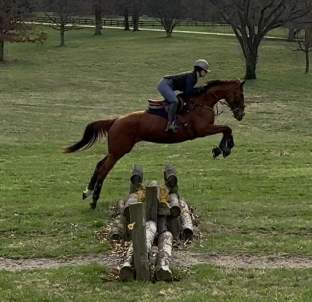 Most recently, 3/14/2026, Nala went to Masterson Station, where she schooled up through some Beginner Novice XC fences and she loved it! She has a great gallop, easy lead change, and a great jump. She went up and down banks, through water, and over all the fences we asked her to jump. She trailers well, was quiet the whole time, unloaded well, and was easy to tack up in a new environment.